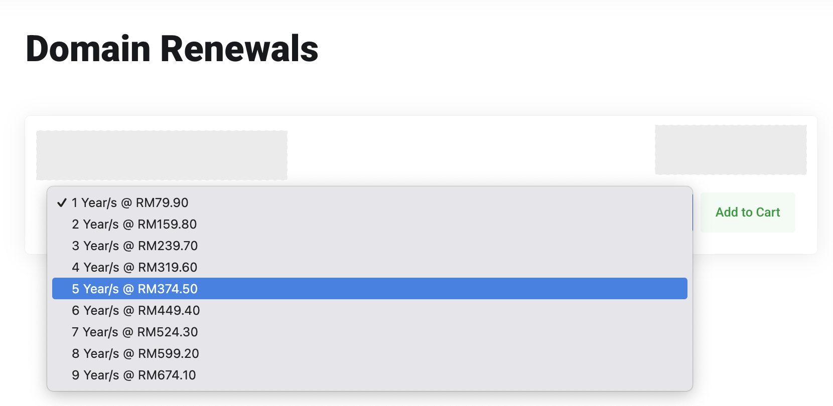 4. Choose the number of years you want to renew your domain name from the drop-down menu.
