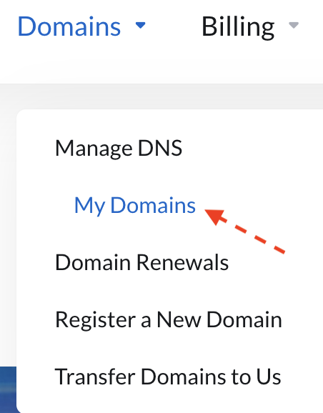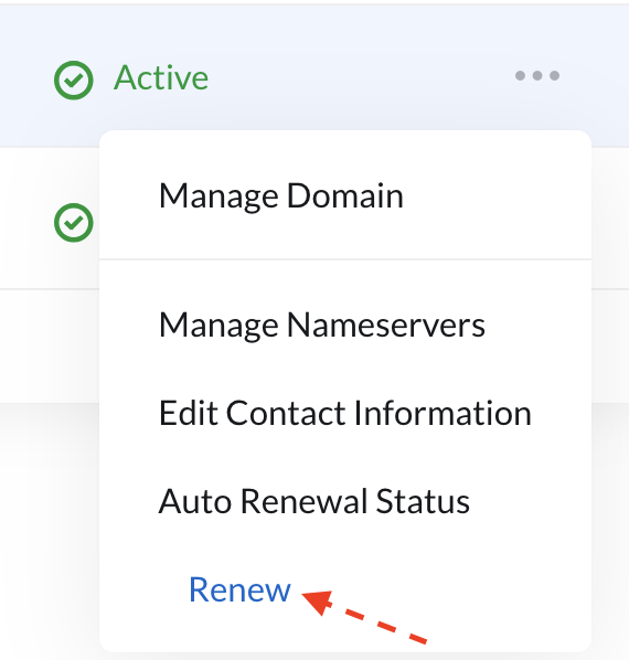 3. Click on the "arrow icon" button next to the domain name you wish to renew. Then select "Renew".