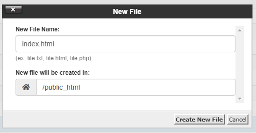 In the root directory of your domain, create a new file called index.html by clicking on File.